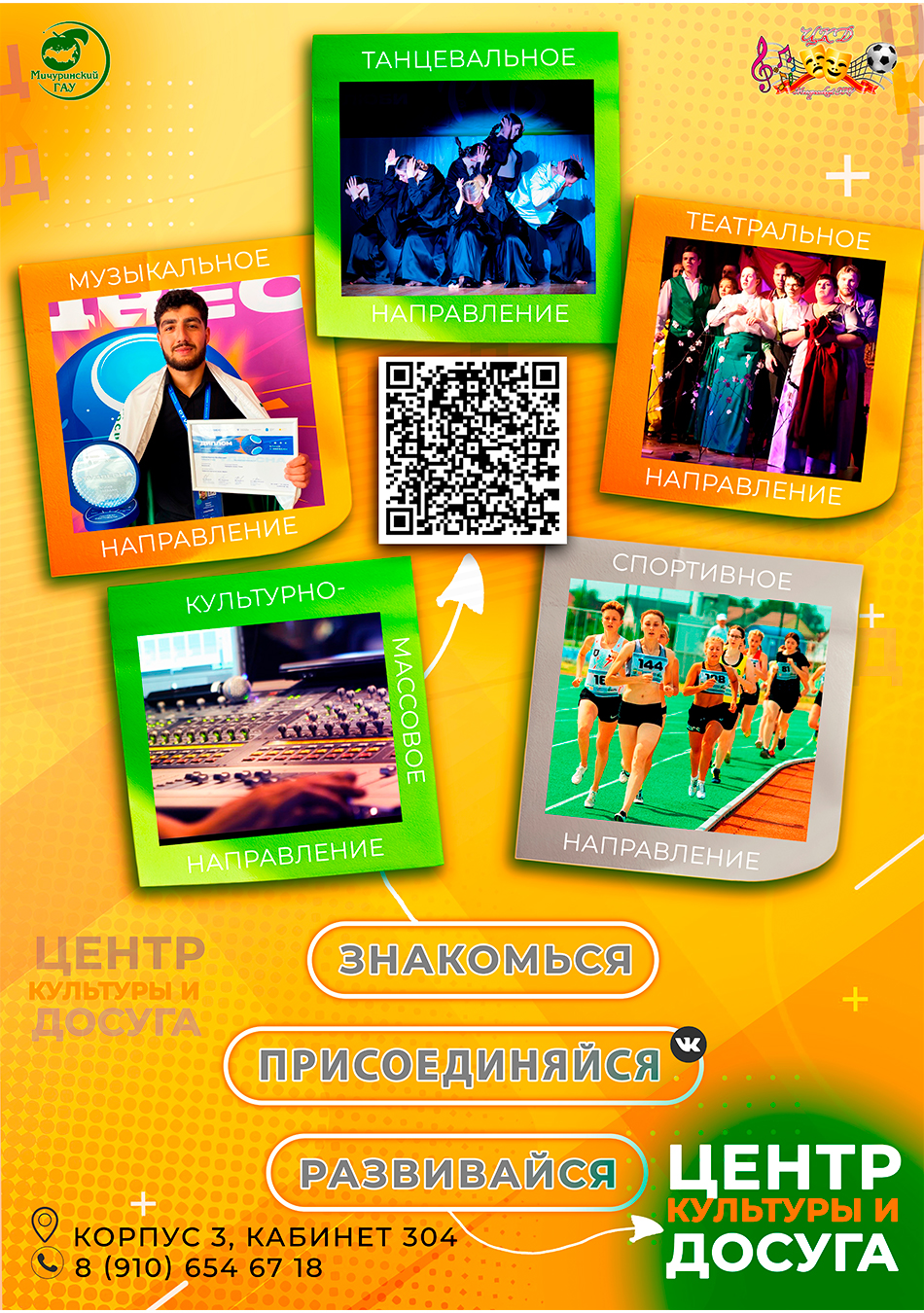 Мы ждем тебя в Центре культуры и досуга Мичуринского ГАУ для новых открытий, развития и побед в различных конкурсах и фестивалях России.